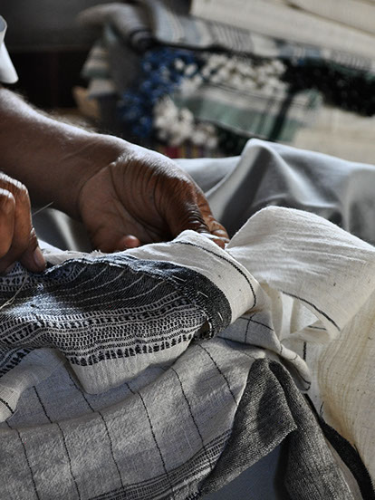 Hand Made was realised in conjunction with Indian crafts support agency Khamir. Working with the organisation and local growers, weavers, tailors and embroiderers, Welsh has created beautiful garments from fabrics made of this exceptional variety of cotton. This ongoing project aims to deliver positive social and economic impact to the rural artisans of Kachcch, through the creation of new and sustainable products, and the promotion of Kala Cotton to the international design community.