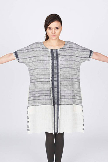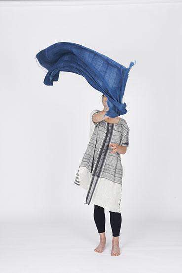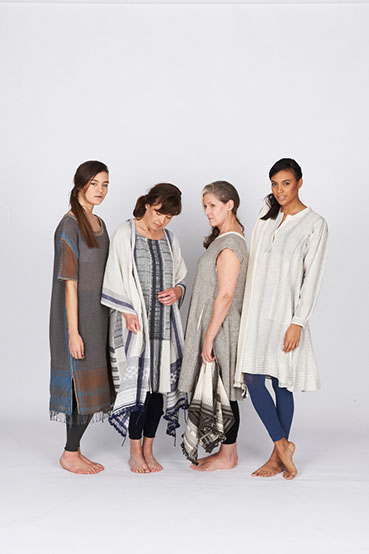 The innovative designs were inspired by traditional Indian detailing and pattern cutting methods, which Welsh has skillfully translated into contemporary womenswear. Welsh worked closely with Bhujodi master weaver Shamji Vishram Vankar, to develop a range of organically dyed fabric designs exclusively for the project. The garments exhibited traditional hand embroidery and embellishment, carried out by the women of the Rabari community in Bhujodi.