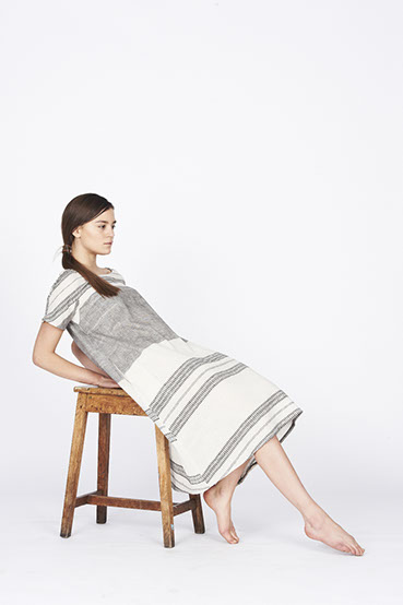 Welsh’s garments celebrated the virtues and natural softness of the material, fusing British and Indian heritage cutting techniques with a more minimal western fashion fit and sensibility. Her silhouettes are loose and flattering, making the most of the distinctive patterning of the woven cotton.